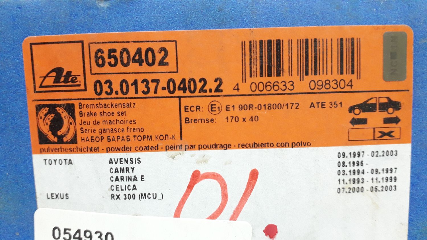 Колодки ручного тормоза к-кт Lexus RX 300 1998-2003, Toyota Avensis I 1997-2003, Lexus ES 2012-2018, Toyota Kluger V (XU20) 11/2000 - 03/2007 SUV ACU20W, ACU25W, MCU20W, MCU25W, MHU28W, Lexus ES (SV40) 2006-2012, Toyota Camry V30 2001-2006, Toyota Camry V40 2006-2011, Toyota Carina E 1992-1997, Toyota Celica (T20#) 1993-1999, Toyota Highlander I 2001-2006