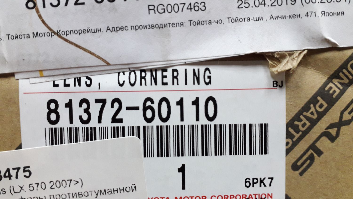 Стекло фары противотуманной правой Lexus LX 570 2007>