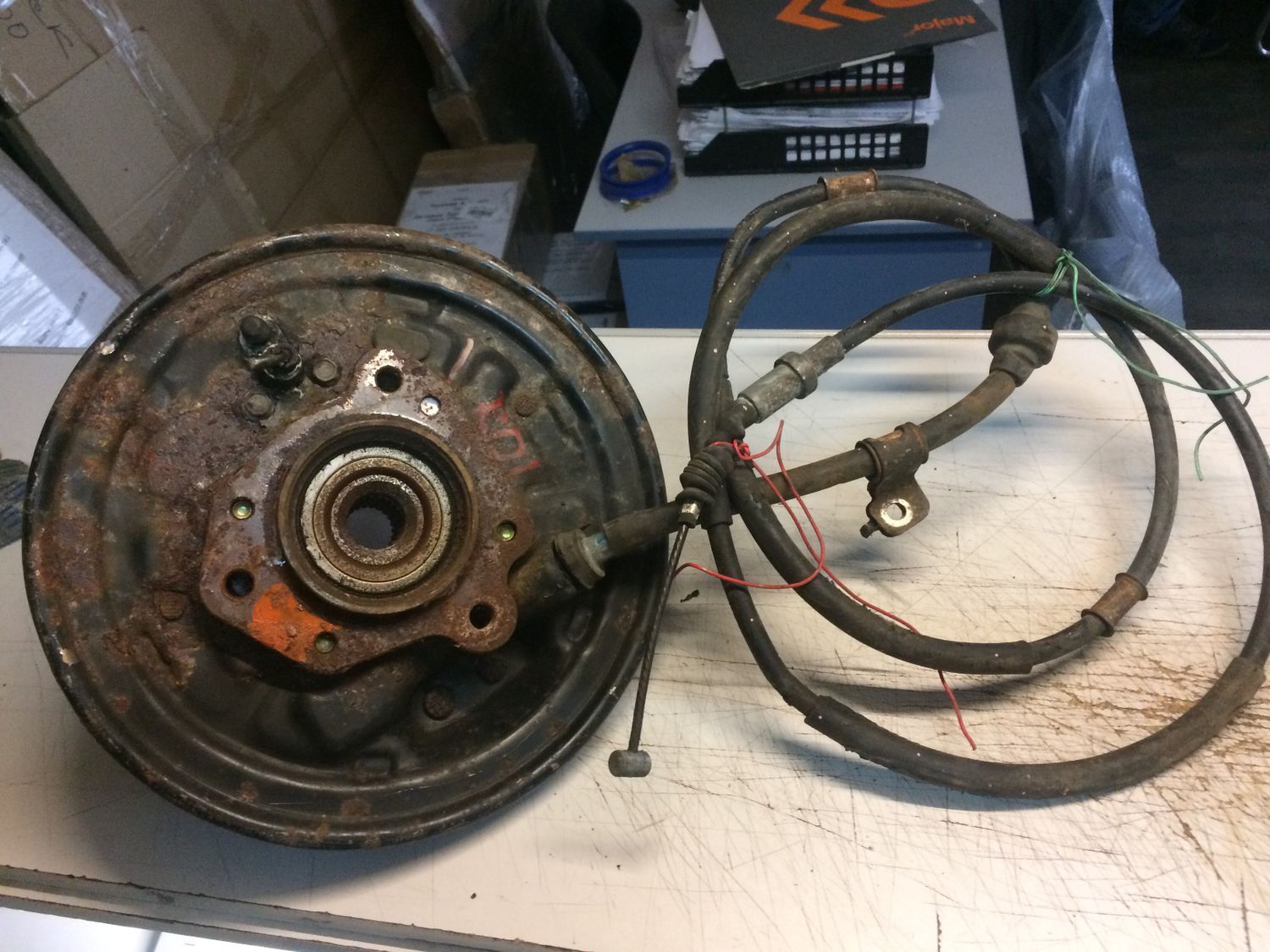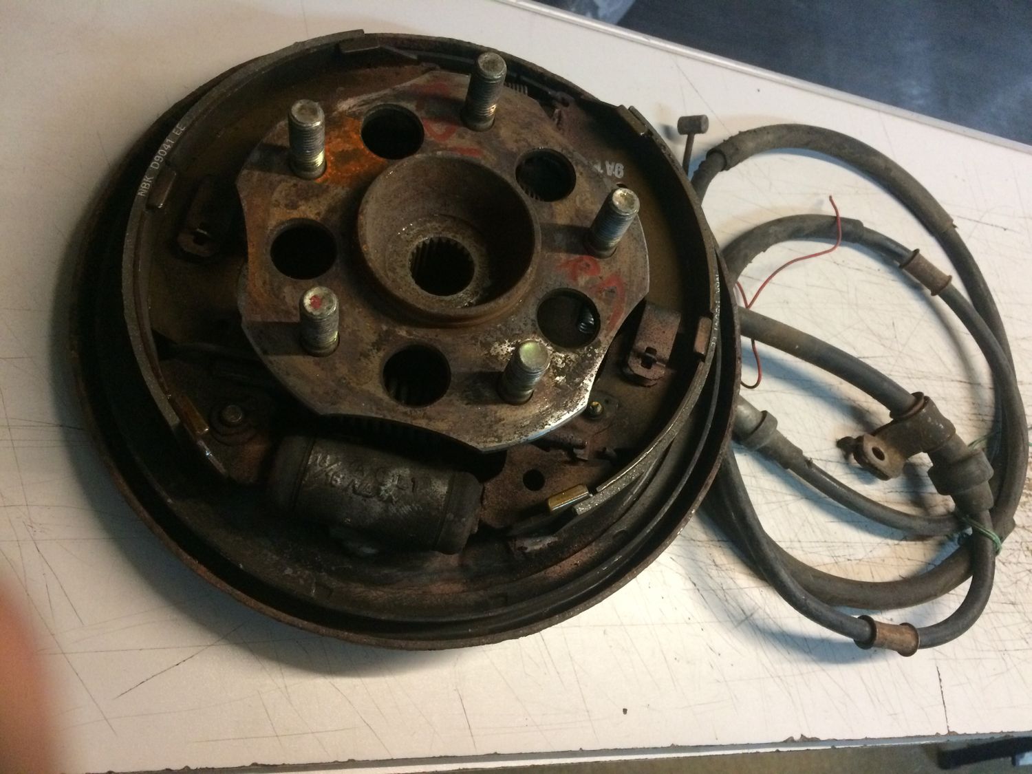 ЗАДНЯЯ ЛЕВАЯ, В СБОРЕ С КОЛОДКАМИ И ТРОСОМ, 5 ШПИЛЕК. ЦАПФА Для моделей Honda CR-V, RD1 Для двигателей B20B, B20B2, B20B3, B20B9, B20Z1, B20Z3